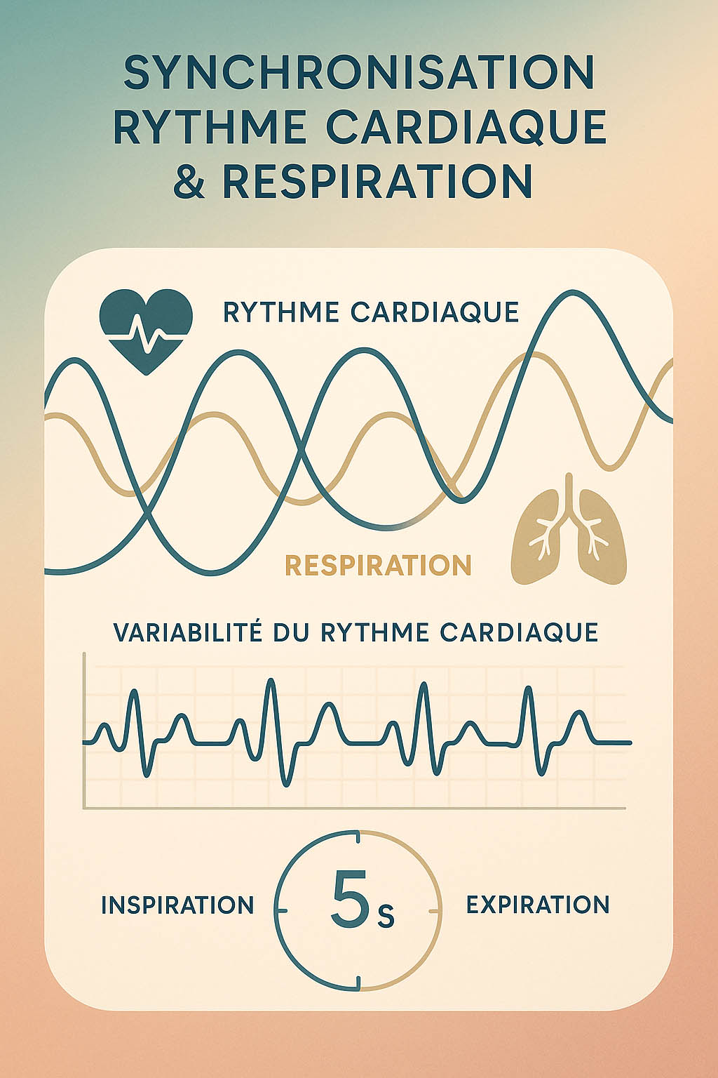 Quand nous respirons calmement, de façon régulière, notre cœur se met à battre en harmonie avec notre souffle. Cet état de « cohérence » favorise un équilibre physiologique et émotionnel. Si vous souhaitez comprendre plus en profondeur comment cette synchronisation influence votre cerveau, je vous recommande mon article sur la respiration et les ondes cérébrales.